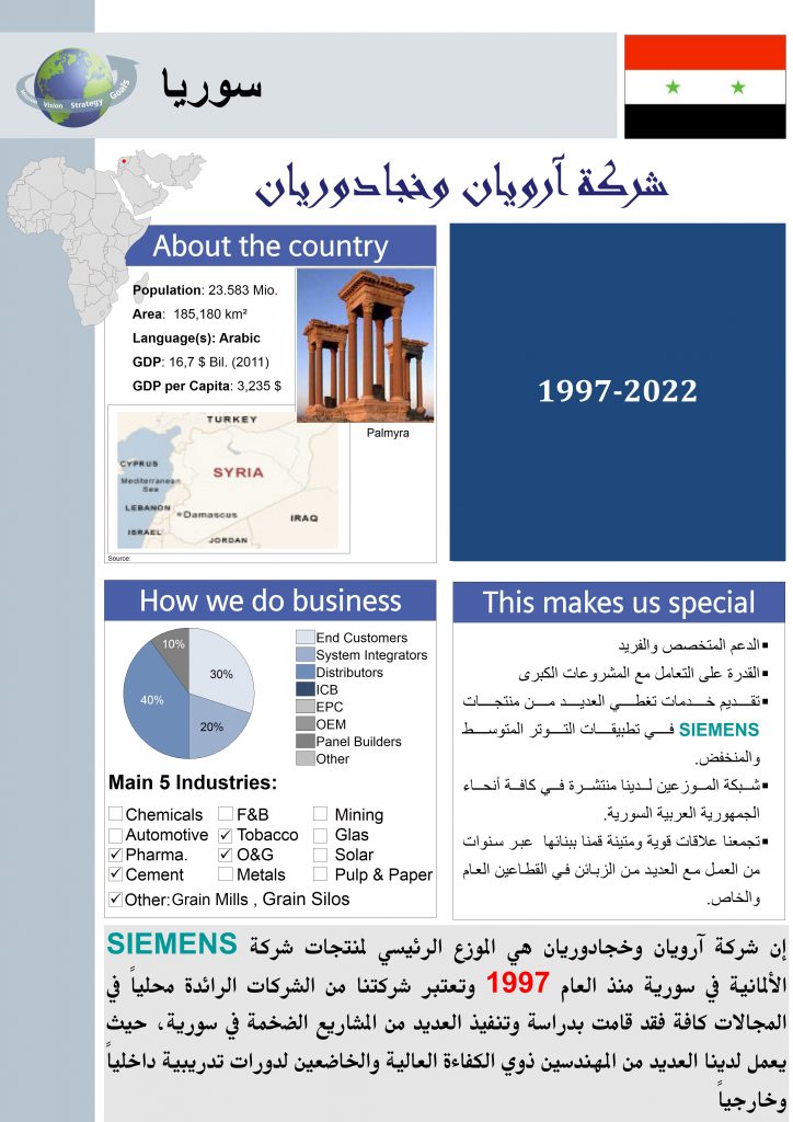 إن شركة آرويان وخجادوريان هي الموزع الرئيسي لمنتجات شركة SIEMENS الألمانية في سورية منذ العام 1997 .