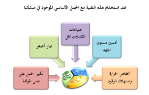 - انخفاض درجة حرارة ملفات المولدة وانخفاض استهلاك الوقود وانخفاض نسبة التلوث.